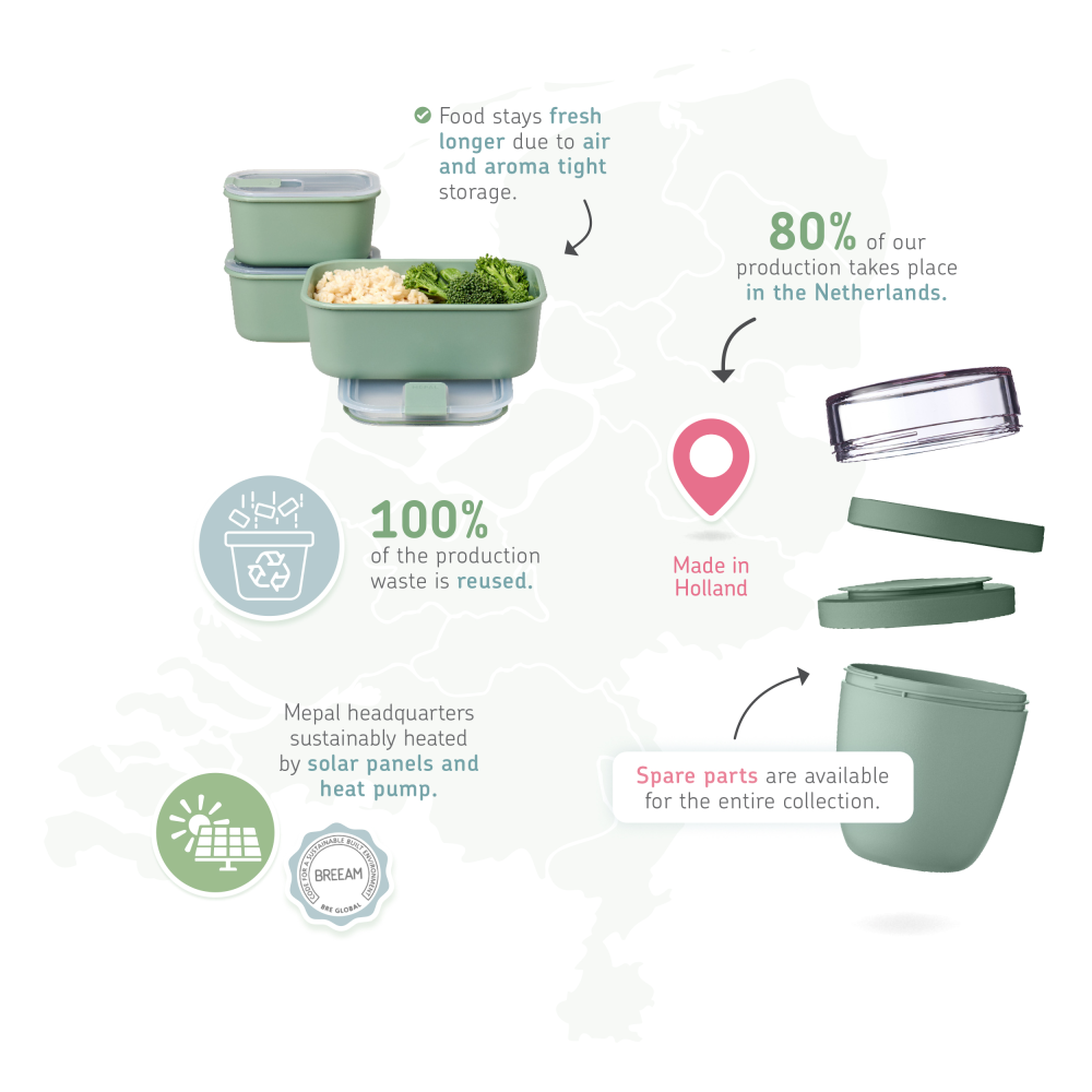 De producten zijn te herkennen aan hun goed doordachte oplossingen, functionele en eigentijds design. Mepal zorgt ervoor dat genieten op belangrijke momenten in het leven heel gemakkelijk wordt.